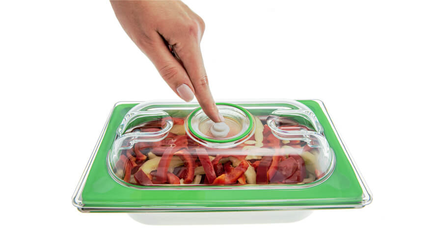 Zakaj vakuumirati? Ker boste prihranili čas in denar! Če ste mislili, da je uvajanje vakuumskega shranjevanja v vašo kuhinjo predrago, ste se zmotili. Potrebna je le manjša investicija v GN pokrove, ki bo spremenila obstoječe GN posode v vakuumske posode za shranjevanje živil.