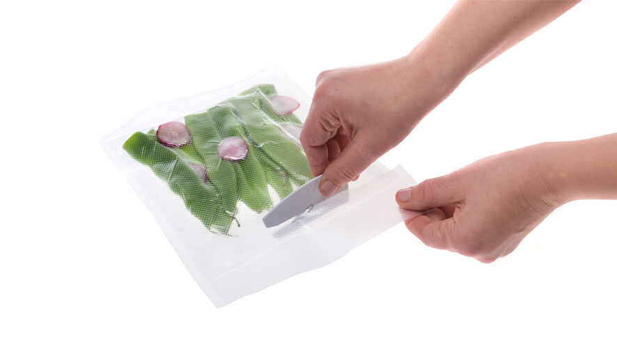 Za doseganje kakovostnih rezultatov pri vakuumskem pakiranju živil morajo biti vrečke za vakuumiranje narejene iz posebnih materialov, primerne debeline in imeti zadosten rebrasti profil. Navadne vrečke za shranjevanje so debele le 20 µm, zato je odmrznjeno meso žaltavo, zelenjava pa brez okusa oziroma s priokusom zamrzovalne skrinje.