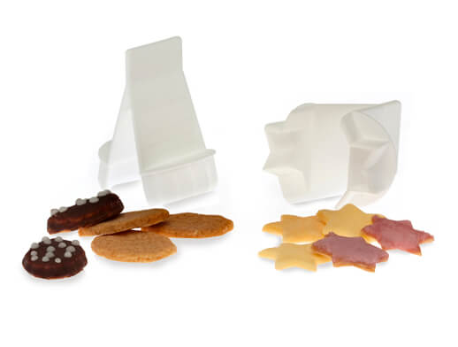 Posebna modelčka za piškote, ki se odpirata, sta namenjena lažjemu prenašanju surovih piškotov na pekač. Modelček stisnite, ko zarežete v testo in ga spustite šele nad pekačem – za hitre kekse, katerih oblika je vsakokrat popolna. Piškote popestrite s čokoladnim, limoninim ali drugim prelivom.