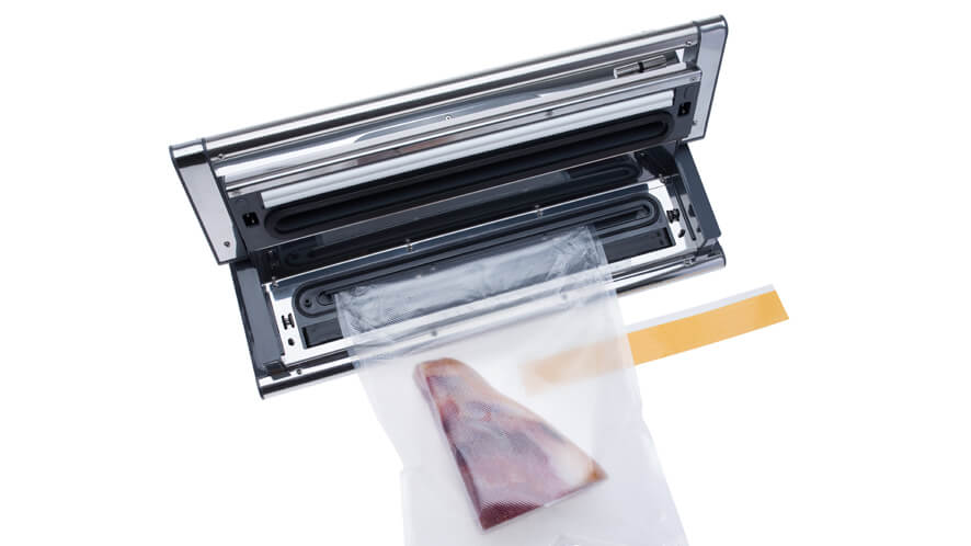- Omogoča varčevanje s folijo, saj lahko vrečko med vakuumiranjem natančneje namestite v aparat.