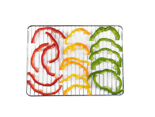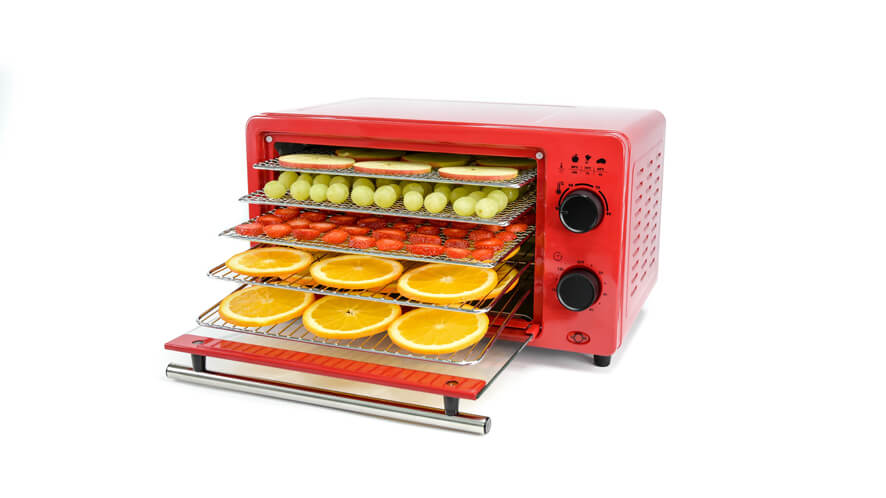 Manjši sušilnik vsebuje 3 mrežaste pladnje za drobna živila in 2 pladnja z rešetko za sušenje, jabolk, pomaranč, gob in ostalih večjih živil. Na dnu se nahaja še pladenj za drobtine za enostavnejše čiščenje notranjosti.